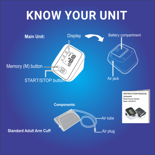The house medic HM-BP101 is a small, user-friendly blood pressure monitor that provides fast, accurate readings for both blood pressure and pulse rate.