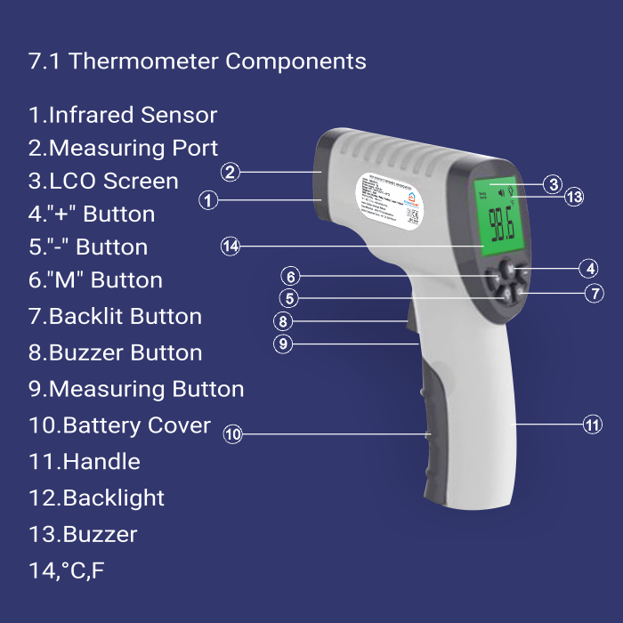 - High precision and speed: The forehead digital infrared thermometer uses the most cutting-edge infrared technology to swiftly take the target temperature, analyse the data intelligently, and display the result in less than 0.5 seconds.